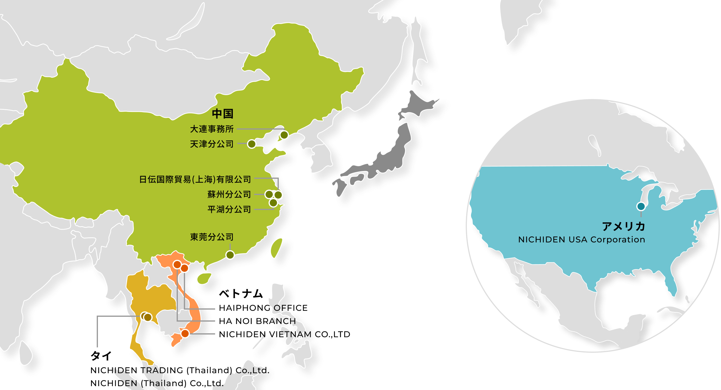 海外には5か所の現地法人を配して、グローバルに展開してまいります。