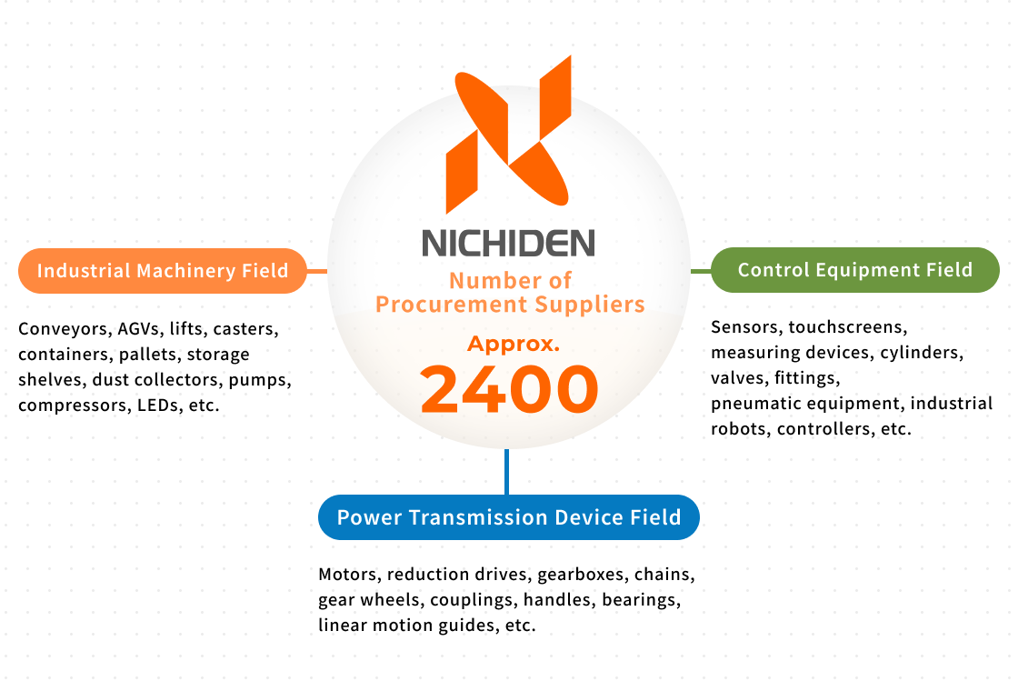 From power transmission equipment such as precision reducers, transmission belts, and clutches and brakes to conveyor-related equipment, robots, and automated systems—as an authorized distributor for a wide range of products, Nichiden has built a network with suppliers both domestic and international. Based on relationships of trust with suppliers, we provide optimal products in a stable manner.