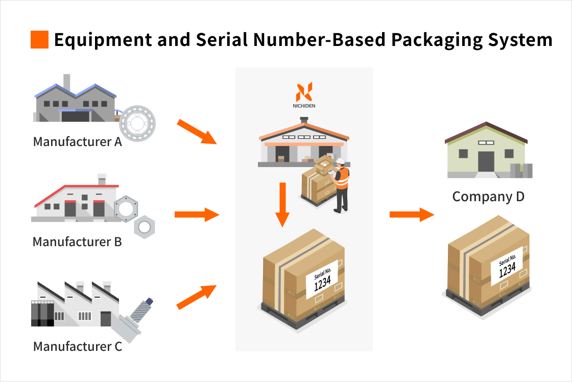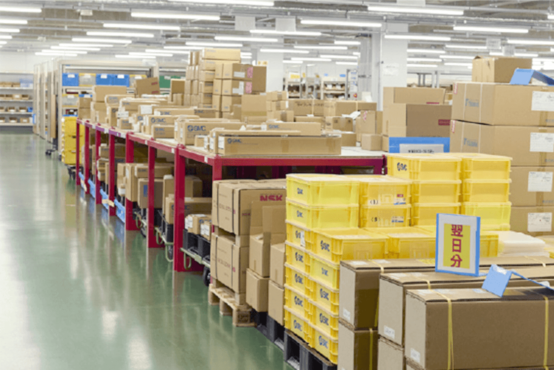 Nichiden’s logistics centers consolidate ordering, delivery scheduling, and inventory management for parts procurement. We centrally manage parts from individual suppliers and reduce man-hours through lot orders. We also offer delivery at times and locations specified by the customer along with logistics solutions.