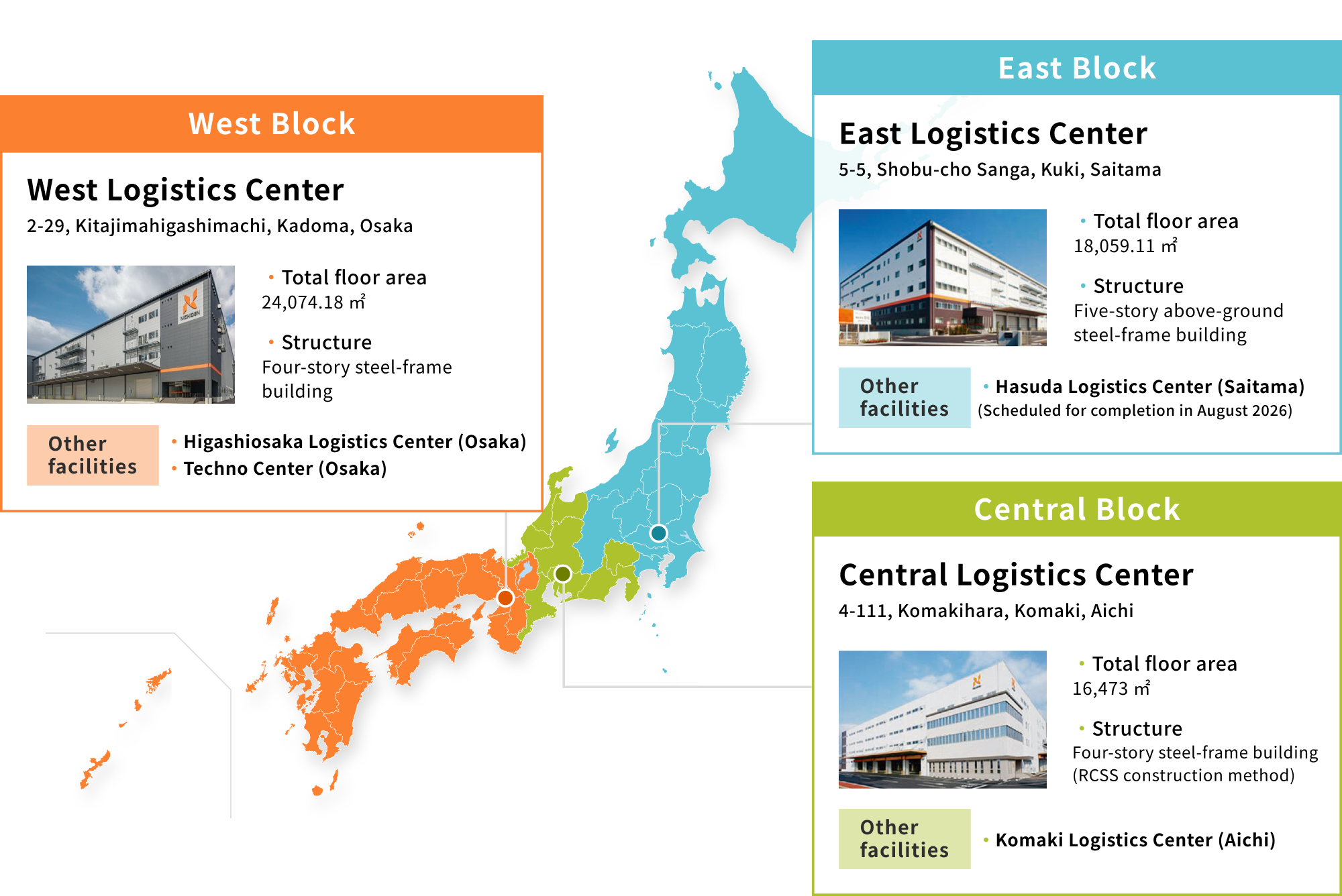 fast and reliable logistics system covering all of Japan based around logistics centers in the East,