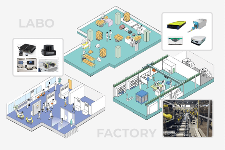 Trial tests of AGVs and AMRs are possible here. We have also established FACTORY, a co-creation space for development with users, manufacturers, and system integrators that serves as a venue for verifying production technology.