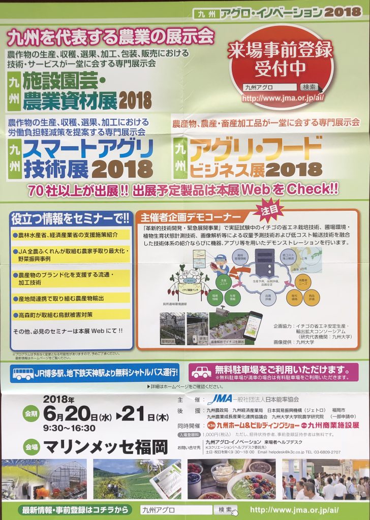 九州スマートアグリ技術展2018 出展のご案内