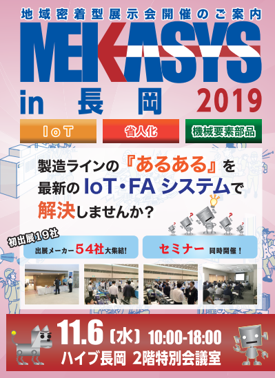 MEKASYS in 長岡2019開催のご案内(11/6 長岡産業交流会館 ハイブ長岡)