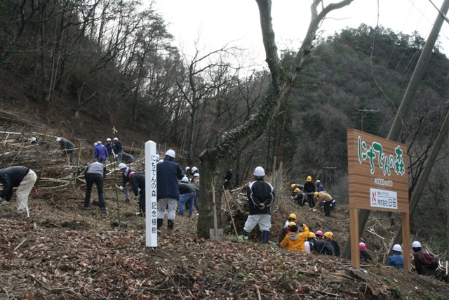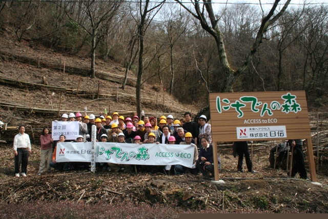 2012年 3月17日(土曜日)、本社、東大阪、西部物流センターの社員60余名がボランティアで第2回森づくり活動を実施いたしました。