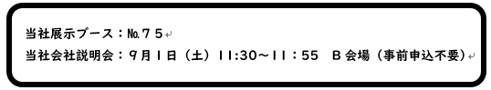 プレスリリース 2018.08.03 「日経IR・投資フェア2018」出展のお知らせ 当社は、8月31日(金)~9月1日(土)の2日間、東京ビッグサイトにて開催されます「日経IR・投資フェア2018」に出展いたします。 開催期間中は企業ブースを出展し、ミニ説明会を実施するほか、代表取締役社長 福家利一による会社説明会を実施いたします。 この機会に少しでも多くの皆さまに当社へのご理解を深めていただければと考えております。 皆さまのご来場を心よりお待ちしております。 「日経IR・投資フェア2018」開催概要 日時:2018年8月31日(金)~9月1日(土) 10:00~17:00 会場:東京ビッグサイト 東4ホール 主催:日本経済新聞社 入場料:無料 一覧に戻る